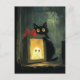 A fun Halloween scene with a ghost in a gift box kept by a black cat in her arms