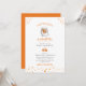 Super cute Halloween baby shower invitation featuring an adorable ghost holding a jack o lantern. Typography says A Little Boo Is Almost Due. Just perfect for halloween baby showers. See coordinating items in our shop, Enchanted Finch.