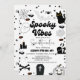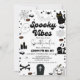 Halloween birthday invitation card including illustrations of a ghost, black cat, spider, bat, candy, candles, spider, and pumpkins. "Spooky vibes Halloween Ghost Birthday Invitation!" Easily PERSONALIZE this design with your information!" This design is suitable for people of all ages.If you require MATCHING ITEMS, please see our matching collection or shop.