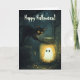 Happy Halloween greeting with a lovely fun Halloween scene with a ghost in a jar and a black cat
