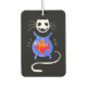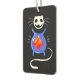 Hanging car air freshener with a skeleton ghost kitty cat and gold fish bowl.