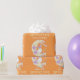 Spooky melty yellow moon on orange background and a cute spooky ghost with an owl friend. Perfect for a spooky cuteness Boo! Personalise the name of your baby boy for a Spooktacular Halloween 1st birthday gift wrapping paper.