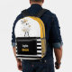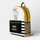 Add a touch of playful charm to your Halloween with this adorable backpack. Featuring a friendly ghost surrounded by vibrant sunflowers and striped pattern in black, white and yellow, this design is perfect for creating a festive and inviting atmosphere. The unique combination of Halloween elements and cheerful patterns will make your gifts extra special. You can easily customise it with name.