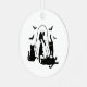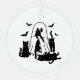 A cute Halloween tree ornament featuring a friendly ghost with a few black cats.