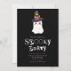 At the top of the invitation, a super cute ghost wearing a wizard’s hat brings a charming twist to the classic Halloween monster. This friendly ghost adds a touch of magic and whimsy, making the invitation fun and festive while still keeping it spooky. With its adorable expression and magical hat, this ghost captures the playful side of Halloween, perfect for a party that blends fun with just the right amount of mystery.