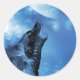 A ghost wolf howling to the winter moon. An unusual and unique design showing the full moon in the sky with stylised stars.