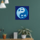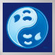 Yin Yang symbol made from two spooky ghosts in contrasting shades of blue.