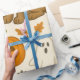 This playful Halloween design features an adorable brown puppy dressed as a witch, complete with a pointy black hat and matching cape. Surrounded by glowing jack-o’-lanterns, floating ghosts, fluttering bats, paw prints, and autumn leaves, the scene blends spooky charm with heartwarming cuteness. Perfect for dog lovers and Halloween fans alike, it captures the magic of the season in a fun, family-friendly style. 🎃👻🐾✨