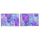 Bold purple and blue swirls create a marbled ink effect on a white background.