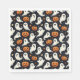 Cute ghosts float among grinning jack o'lanterns on a black background on this fun Halloween paper napkin.