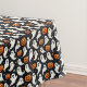 Cute ghosts float among grinning jack o'lanterns on a black background on this fun Halloween tablecloth.