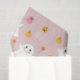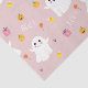 A cute pink tissue paper with a Halloween pattern made of ghosts , candies m pumpkin , jack-o-lanterns etc. Perfect for an October ba