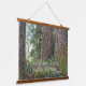 Decorate your living space with this horizontal, hanging wall tapestry with wooden tops that features the photo image of a giant conifer forest of Douglas Fir trees along with inspiring words of a nature quote by naturalist John Muir that reads, "The clearest way into the Universe is through a forest wilderness."