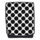 Backpack in a contemporary print of giant Ikat dots, with a subtle, striated pattern, in a classic combination of black dots on a white background