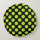 Giant Lime Green Polka Dots on Black Round Pillow