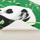Wildlife art of a Giant panda on green background surrounded by swirl branch patterns and decorative leaves