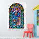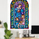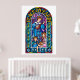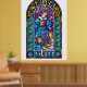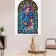 Peace on Earth Pre-Raphaelite style Christmas giant poster. Illustrated in great detail in water colour and coloured pencil, featuring a stained glass design after Burne Jones.