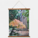 Decorate your living space with this vertical, hanging wall tapestry with wooden tops that features the photographic image of a Giant Sequoia and an autumn coloured Japanese Maple tree in a garden setting.