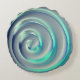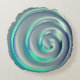 Giant silver and aquamarine spiral over blue round cushion