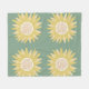 A beautiful hand-drawn giant yellow sunflower on a light green background.
