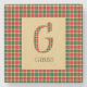 Handsome design celebrating your Scottish heritage, features monogram letter G in Clan Gibbs tartan plaid with matching background and customisable text