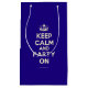 Based on the original Keep Calm and ... poster this cream and blue Keep Calm and Party On Gift Bag features a custom designed font that matches the original closely.