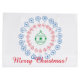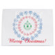 Graphic image is replicated across wrap. A single large green and white round tree ornament in centre of circle of small red ornaments, and medium sized blue ornaments, arranged in two concentric circles. "Merry Christmas!" is in red script at the bottom.