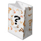 Jumbled question marks. Personalise with any keyboard character. Currently the character is a question mark. A large central character in black is surrounded by four slightly smaller characters, and more, even smaller characters are jumbled around the central letter and show in various shades of orange and brown.