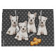 Striking graphic artwork of 4 cute Terrier pups is available on a range of household goods. With a customisable polka dot pattern background it makes an attractive gift bag for a pet lover or to give to a pet lover.