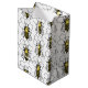 Yellow and black Bee sitting on honeycomb. Image tiled in staggered tile pattern on white background.