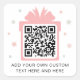 Business QR code stickers featuring your QR code on a blush pink (or custom colour) gift box silhouette surrounded by pink and pale green ( or custom colour) stars. Text, font and colours are customisable. Perfect for directing your customer to a gift or freebie.