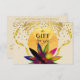 Gift Voucher discount card as GC gift certificate for season inviting customers to avail the discounts in the theme of lotus flower watercolor with confetti for massage, hair, holistic,yoga,fitness, reiki,meditation professionals