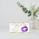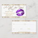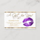 Gift Certificate Card. Purple glitter lips on a white background with gold accents. (For matching products and designs type in Keyword: GLITTER LIPS ) (Note: Not Real Glitter, this is a print) ⭐This Product is 100% Customisable. Graphics and text can be deleted, moved, resized, changed around, rotated, etc... ⭐99% of my designs in my store are done in layers. This makes it easy for you to resize and move the graphics and text around so that it will fit each product perfectly. ⭐ (Please be sure to resize or move graphics if needed before ordering) You can also "TRANSFER DESIGN" on other Zazzle products and adjust the design to fit most of Zazzle items. (button is down on the right side of the page) Some of the text graphics have ready to fill in the box(es) or you can Click on the "CUSTOMIZE" button to add, move, delete, resize, background colour or change any of the font or graphics. The design is made with high resolution vector and/or digital graphics for a professional print. ⭐NOTE: (THIS IS A PRINT. All zazzle product designs are "prints" unless otherwise stated under "About This Product" area) The design will be printed EXACTLY like you see it on the screen and on the product...so please make sure when you do your changes on the resizing of any of the graphics or text that it fits in the areas correctly and that your spelling and wording is how you like it to be in size, colour and font. If you have any questions about the "DESIGN ONLY" or need help please contact me at my direct email - siggyscott@comcast.net or visit my store link: http://www.zazzle.com/store/designsbydonnasiggy (Copy and Paste) I'll be happy to help. ⭐ ALL OTHER QUESTIONS (such as the shipping, a refund, the printing is incorrect, or the product itself, etc...) PLEASE CONTACT ZAZZLE OR THE MAKER ⭐DIRECTLY⭐. Thank you for the support and stopping by my store - DesignsbyDonnaSiggy. © Donna Siegrist⭐⭐⭐ ZAZZLE promises 100% satisfaction.
