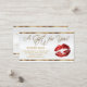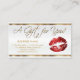 Gift Certificate Card. Red glitter lips on a black background with gold accents. (For matching products and designs type in Keyword: GLITTER LIPS ) (Note: Not Real Glitter, this is a print) ⭐This Product is 100% Customisable. Graphics and text can be deleted, moved, resized, changed around, rotated, etc... ⭐99% of my designs in my store are done in layers. This makes it easy for you to resize and move the graphics and text around so that it will fit each product perfectly. ⭐ (Please be sure to resize or move graphics if needed before ordering) You can also "TRANSFER DESIGN" on other Zazzle products and adjust the design to fit most of Zazzle items. (button is down on the right side of the page) Some of the text graphics have ready to fill in the box(es) or you can Click on the "CUSTOMIZE" button to add, move, delete, resize, background colour or change any of the font or graphics. The design is made with high resolution vector and/or digital graphics for a professional print. ⭐NOTE: (THIS IS A PRINT. All zazzle product designs are "prints" unless otherwise stated under "About This Product" area) The design will be printed EXACTLY like you see it on the screen and on the product...so please make sure when you do your changes on the resizing of any of the graphics or text that it fits in the areas correctly and that your spelling and wording is how you like it to be in size, colour and font. If you have any questions about the "DESIGN ONLY" or need help please contact me at my direct email - siggyscott@comcast.net or visit my store link: http://www.zazzle.com/store/designsbydonnasiggy (Copy and Paste) I'll be happy to help. ⭐ ALL OTHER QUESTIONS (such as the shipping, a refund, the printing is incorrect, or the product itself, etc...) PLEASE CONTACT ZAZZLE OR THE MAKER ⭐DIRECTLY⭐. Thank you for the support and stopping by my store - DesignsbyDonnaSiggy. © Donna Siegrist⭐⭐⭐ ZAZZLE promises 100% satisfaction.