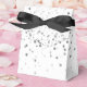 Written in the Stars, this gift favour box can be used for a wedding, anniversary or any special occasion, it's shown with black ribbon detail, with a Silver/Grey-tone stars print over a White colour . Coordinates with the Petite Stars guest books.