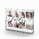 Send a beautiful personalised gift to your father that he'll cherish forever. Special personalised father's day family photo collage photo block to display your own special family photos and memories. Our design features a simple 8 photo collage design with "father" designed in a beautiful handwritten black script style. Each photo is framed with a simple offset gold coloured border. Customise with family member's names.