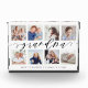 Send a beautiful personalised gift to your Grandpa that he'll cherish forever. Special personalised grandchildren photo collage phot block to display your own special family photos and memories. Our design features a simple 8 photo collage grid design with "grandpa" designed in a beautiful handwritten black script style. Each photo is framed with a simple offset gold coloured border. Customise with grandchildren's names.