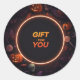 Add a spooky touch to your Halloween gifts with this "Gift For You" classic round sticker. Featuring bold lettering and eerie Halloween elements like bats, pumpkins, and cobwebs, this sticker is perfect for sealing party favours, trick-or-treat bags, or spooky gift boxes. Make your Halloween treats extra special with this festive and fun design!