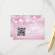 On the front side is a custom qr code on a pink glitter design.