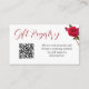 Wedding enclosure cards for gift registry. Direct guests to a wedding website to find their gift registry information by customising these small cards with their QR code. White cards have red script at the top, a short paragraph to the side, and a QR code template. A rose stem with bloom and buds, decorates the upper righthand corner. Reverse is solid red. Enclose a card with an invitation to a shower, engagement party, or wedding ceremony and reception.
