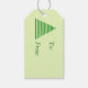 Large graphic Christmas tree created with solid green lines of various lengths, along with "To:" and "From:" text. Back shows multiple trees in a diagonal pattern. Background is a light green.