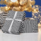 Tiled image of black and white stripes. In the center of the tiled image is a circle where the stripes are altered to horizontal creating an optical illusion.