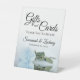 This pretty tabletop sign is perfect for letting your wedding guests know where to leave their gifts and cards. It features a simple yet elegant design with a photo of a single long-stemmed light dusty blue coloured rose reflecting in a pool of water with waves and ripples. The sign reads: Gifts and Cards, Thank You So Much! There is room for your names and the wedding date below.