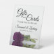 This pretty tabletop sign is perfect for letting your wedding guests know where to leave their gifts and cards. It features a simple yet elegant design with a photo of a single long-stemmed plum purple coloured rose reflecting in a pool of water with waves and ripples. The sign reads: Gifts and Cards, Thank You So Much! There is room for your names and the wedding date below.
