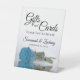 This pretty tabletop sign is perfect for letting your wedding guests know where to leave their gifts and cards. It features a simple yet elegant design with a photo of a single long-stemmed sky blue turquoise or azure coloured rose reflecting in a pool of water with waves and ripples. The sign reads: Gifts and Cards, Thank You So Much! There is room for your names and the wedding date below.