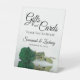 This pretty tabletop sign is perfect for letting your wedding guests know where to leave their gifts and cards. It features a simple yet elegant design with a photo of a single long-stemmed emerald green coloured rose reflecting in a pool of water with waves and ripples. The sign reads: Gifts and Cards, Thank You So Much! There is room for your names and the wedding date below.