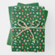 A stylised Christmas design featuring gifts, stockings, candy-canes, snowflakes, ornaments and bells in traditional Christmas colours. Colours includes, green, red, pink and blue.