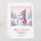 Celebrate the season with this cute watercolor pink coquette snowman kids Christmas card, set in a magical snowy forest. Editable text lets you personalize instantly, and the digital download provides an easy, fast, and festive holiday greeting.
