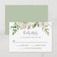 Affordable custom printed wedding RSVP cards with an elegant painted floral border in white, green and gold colours. Personalise the design with your wedding RSVP info or use the design tools to customise the text, choose any background colour and edit the fonts and colours to create your own unique wedding reply card design. Reverse side features a pretty sage green background or use the space to add additional text or photos if needed. This beautiful neutral floral design is perfect for any season.