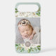 Affordable custom printed phone cases personalised with your photos and text. This pretty feminine design has a painted floral border in shades of white, green and gold on mint background. Add your own custom photo and personalise it with your monogram initial or other custom text in a circle frame. Use the design tools to choose any background colour, edit the text fonts and colours and add more photos to create a one of a kind monogrammed photo case for your device.
